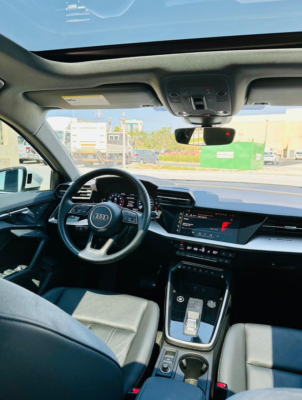 The 2023 Audi A3 Sedan in glacier white is a masterclass in compact luxury, combining Audi's signature design language with an impressively tech-forward cabin. Powered by a 1.4-litre turbocharged engine delivering 150 hp through a 7-speed S tronic dual-clutch transmission, it offers a refined and efficient drive. The pristine white exterior complements a premium interior with a 10.1-inch MMI touchscreen, Audi virtual cockpit digital instruments, wireless Apple CarPlay, wireless charging, and ambient lighting. Heated leather seats, progressive steering, a panoramic sunroof, and a comprehensive suite of driver assistance systems including adaptive cruise control make every journey effortless.