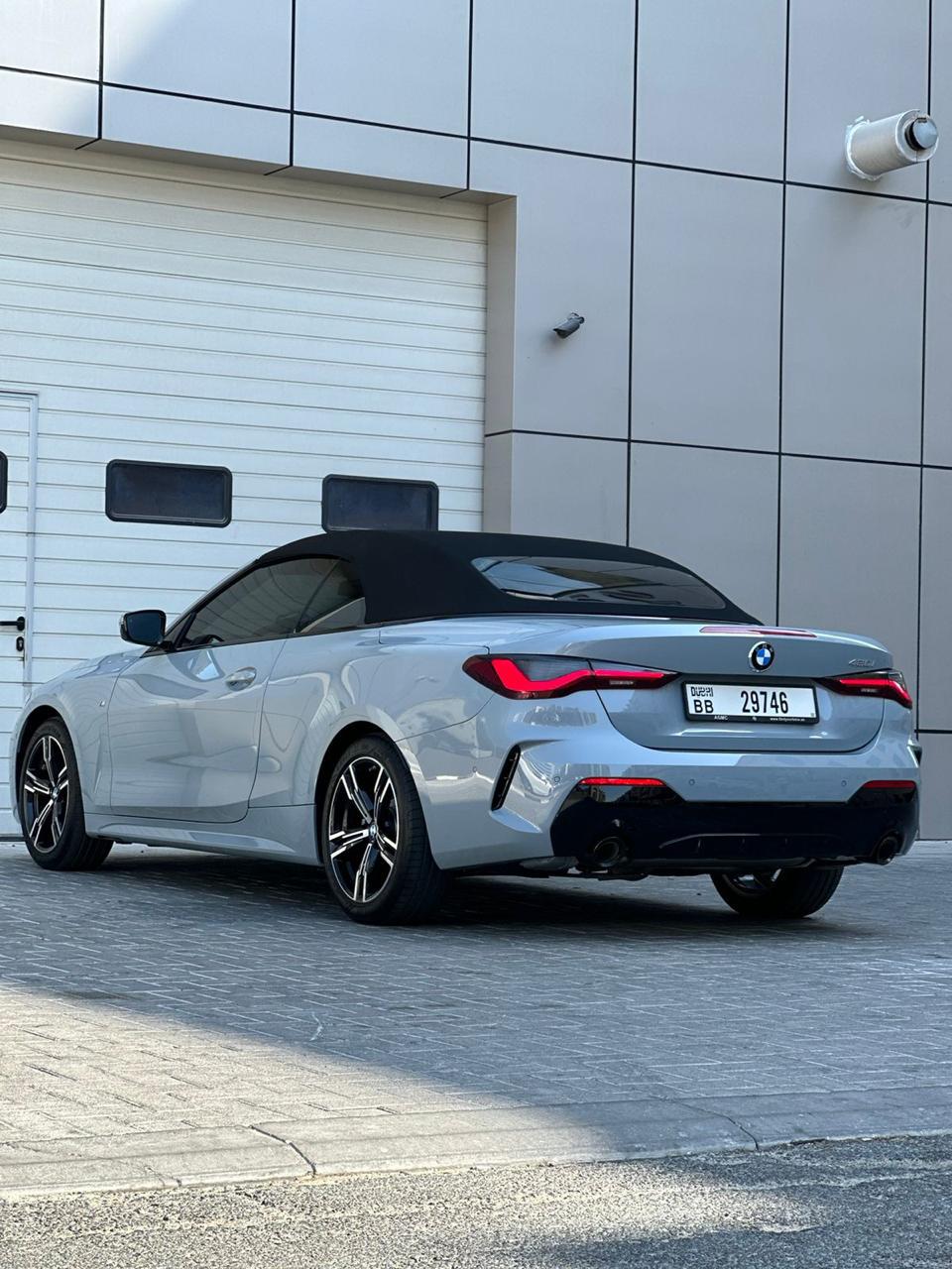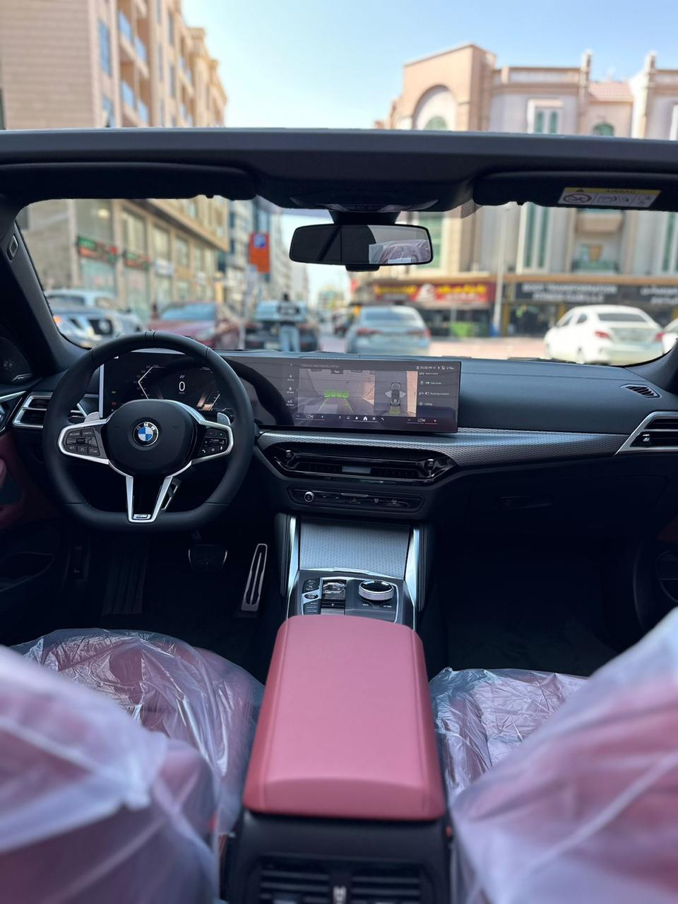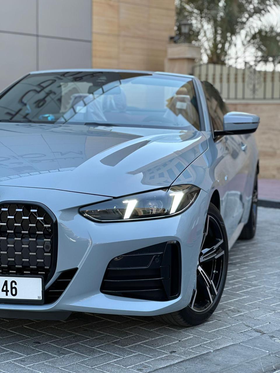 The 2025 BMW 430i Convertible is the ultimate open-air driving experience, combining BMW's athletic design with a power-operated soft top that folds in just 18 seconds. Its 2.0-litre turbocharged engine delivers 245 hp through an 8-speed Steptronic Sport automatic transmission, providing exhilarating performance whether cruising the coastline or carving through city streets. The elegant grey exterior pairs beautifully with the premium interior featuring the BMW Curved Display with a 12.3-inch driver display and 14.9-inch touchscreen, sport leather seats, ambient lighting, and a Harman Kardon surround sound system. With the top down and Dubai's skyline as your backdrop, there is nothing quite like it.