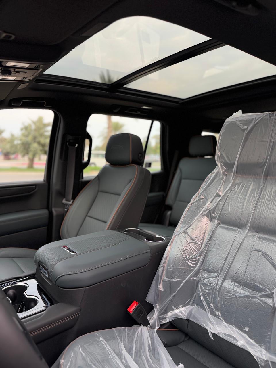 The 2025 GMC Yukon AT4 is a bold and capable full-size SUV that combines off-road readiness with premium luxury. Its powerful 6.2-litre V8 engine delivers 420 hp through a 10-speed automatic transmission, while the AT4 package adds a two-speed transfer case, skid plates, and air ride adaptive suspension for genuine off-road capability. The imposing black exterior houses a refined three-row interior with seating for seven, featuring a 15-inch head-up display, a 13.4-inch infotainment screen, premium leather seating with heating and ventilation, Bose surround sound, and wireless charging. Advanced technologies including HD surround vision, adaptive cruise control, and a comprehensive safety suite make this Yukon the ultimate command vehicle.