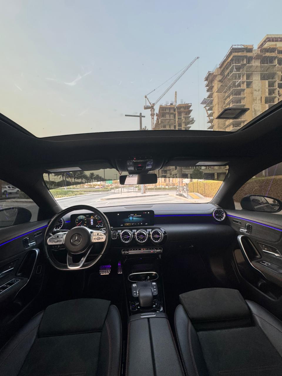 The 2023 Mercedes-Benz CLA 250 is a four-door coupe that proves luxury and style need not be mutually exclusive. Its sleek, aerodynamic silhouette — one of the most streamlined in the industry — conceals a potent 2.0-litre turbocharged engine producing 221 hp through a 7-speed dual-clutch transmission, delivering thrilling performance with everyday practicality. The striking black exterior houses a premium interior with the MBUX dual-screen cockpit, wireless Apple CarPlay, heated leather seats, 64-colour ambient lighting, wireless charging, and a panoramic sunroof. Active brake assist, lane-keeping assist, adaptive cruise control, and a rearview camera ensure safety matches the style.